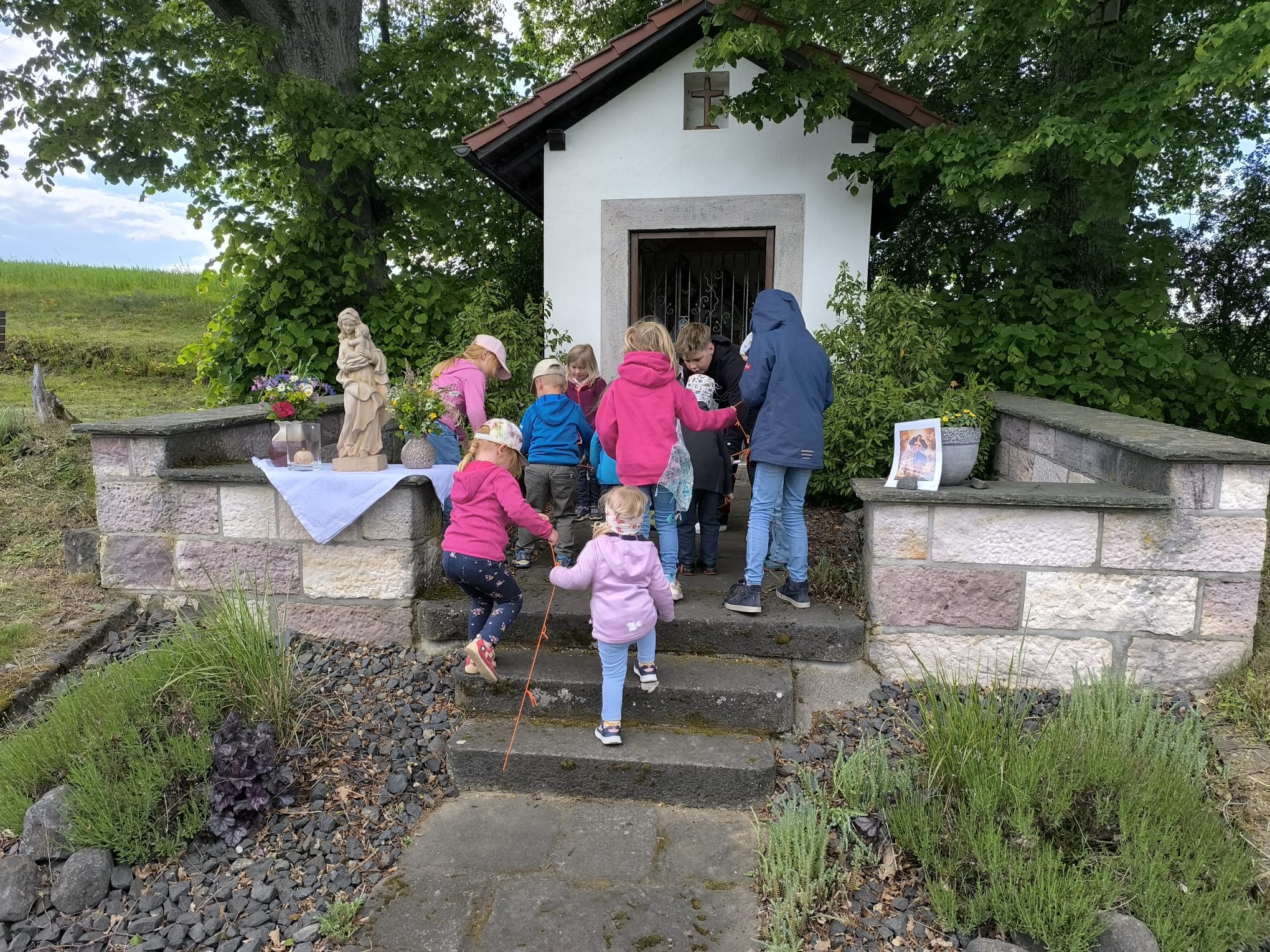 Am 17. Mai fand am späten Nachmittag eine besondere Maiandacht für die ganze Familie am Heiligen Häuschen in Schönderling statt. Das Ereignis stand ganz im Zeichen Marias, der Kontenlöserin, und bot den Anwesenden eine schöne Gelegenheit, gemeinsam zu beten und sich mit dem Thema Vertrauen und Gemeinschaft auseinanderzusetzen.