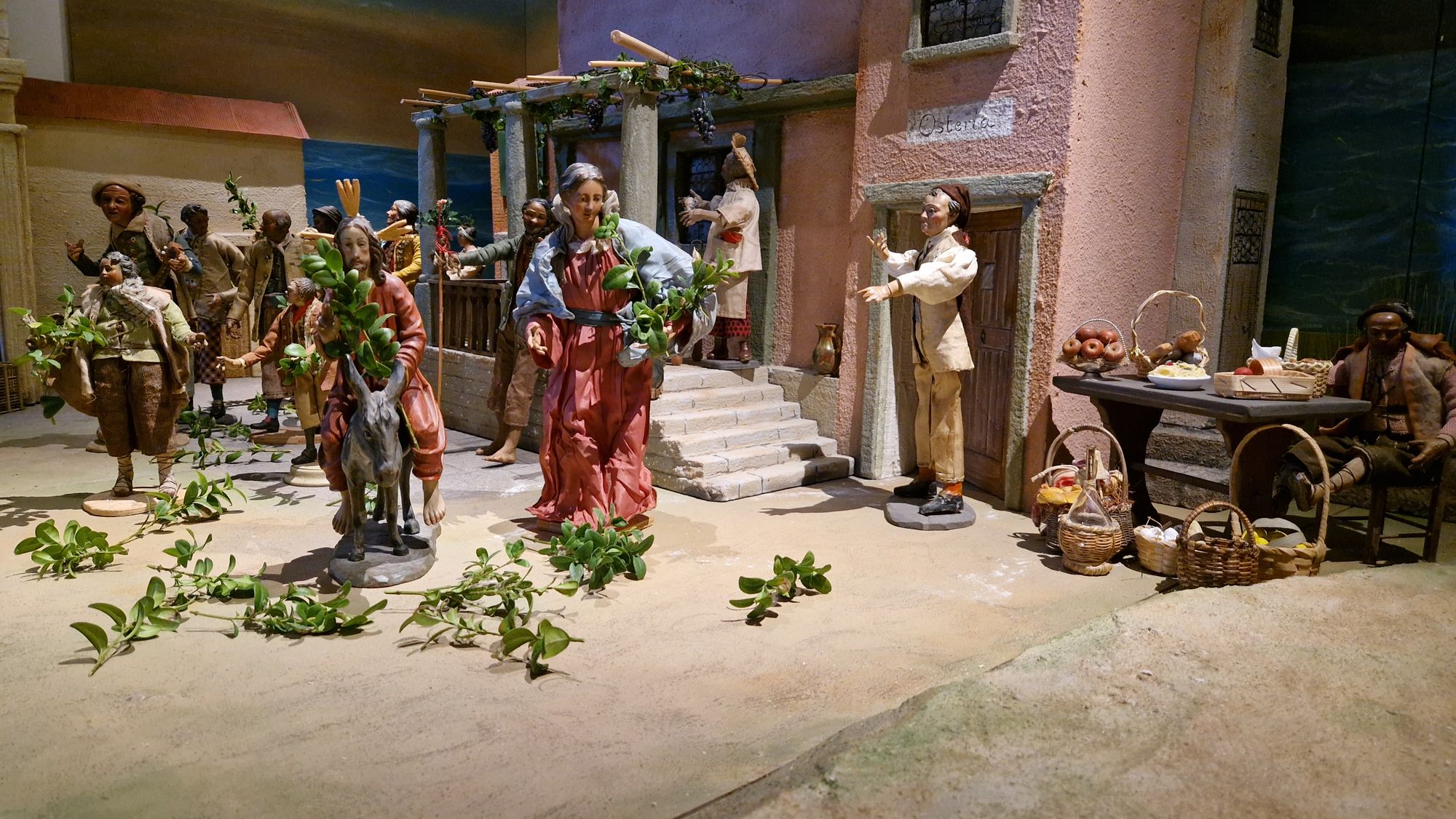 Die Ganzjahreskrippe wurde im November vergangenen Jahres als Schenkung des Bad Brückenauer Diakons i.R. Wilfried Beck in der Wallfahrtskirche aufgebaut. Über das gesamte Jahr hinweg werden dort unterschiedliche Szenen aus dem Leben Jesu dargestellt. „In guter Tradition der neapolitanischen Ganzjahreskrippen ist das Besondere, dass die Darstellungen immer in Verbindung mit unserem Leben geschehen. Diese finden inmitten eines lebendigen Dorfes mit einer Gastwirtschaft, Händlern, Tieren und vielen Menschen statt“, erläutert Diakon Wilfried Beck.