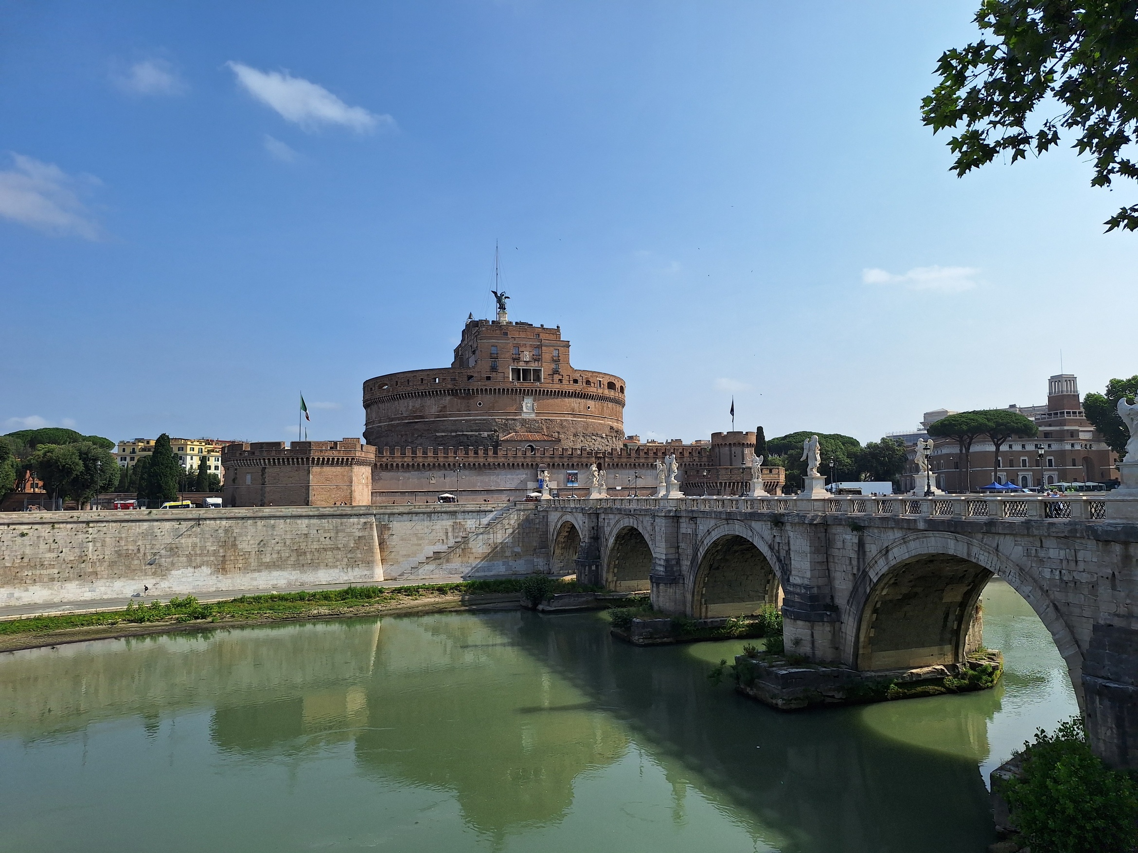 Nach der Pause gingen wir zu der Engelsburg und wurden über die Entstehung und letzte Nutzung des Gebäudes aufgeklärt. Über den Tiber zum Piazza Navona wurde uns über die Geschichten manchen alten Familien von Rom berichtet. Zum Heiligen Jahr hatte man den Platz restauriert und die dazugehörigen Brunnen auch. Über die schmalen und beeindruckenden Gassen von Rom sind wir zur deutschen Gemeinde in Rom gelaufen. Santa Maria dell’Anima liegt im Herzen der römischen Altstadt, sie bietet einen imposanten Kirchenbau und eine reich ausgestattete Sakristei. Dort übte der Chor und das Orchester für den Pfingstgottesdienst am nächsten Tag. Nach dem Genuss der Musik und der Kirchenbetrachtung ging es über die Gassen und Straßen von Rom ins Hotel zurück. Am ersten Abend hatte Claude in der Nähe unseres Hotels ein Restaurant für uns alle organisieren können. Hier wurde gemeinsam italienisch gegessen und getrunken und in allen Augen war die Freude zu sehen. Trotz des langen Tages, machten sich noch einige von der Gruppe auf, den Petersplatz bei Nacht anzuschauen. In aller Stille und fast leer diesen Platz zu erleben, ist wirklich ein Erlebnis!