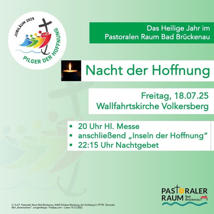 Am Freitag 18.7.2025 laden wir zur "Nacht der Hoffnung" in die Wallfahrtskirche auf dem Volkersberg ein.